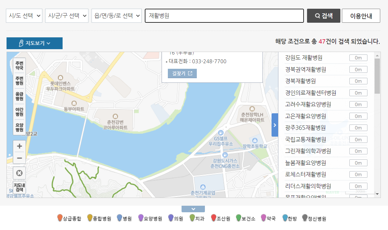 재활병원 추천 병원 이름을 검색을 할 수 있으며 여러분들이 평소에 관심을 가지고 있던 병원의 이름을 검색을 하시면 간편하게 찾을 수 있습니다.